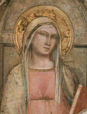 We can see some wonderful resonant echoes of another great prayer to our Lady, the Hail Mary, at work here. (The Memorare comes to mind as well.) In each prayer we implore our Blessed Mother (pictured at left in this painting by the Italian painter Taddeo Gaddi) to assist us with the graces and intercession we need in securing our salvation.