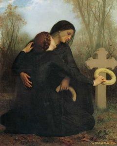 November is traditionally an especially important month to pray for those in purgatory, and many visit the graves of the departed on All Souls' Day, November 2nd, as shown in this painting on the right.
